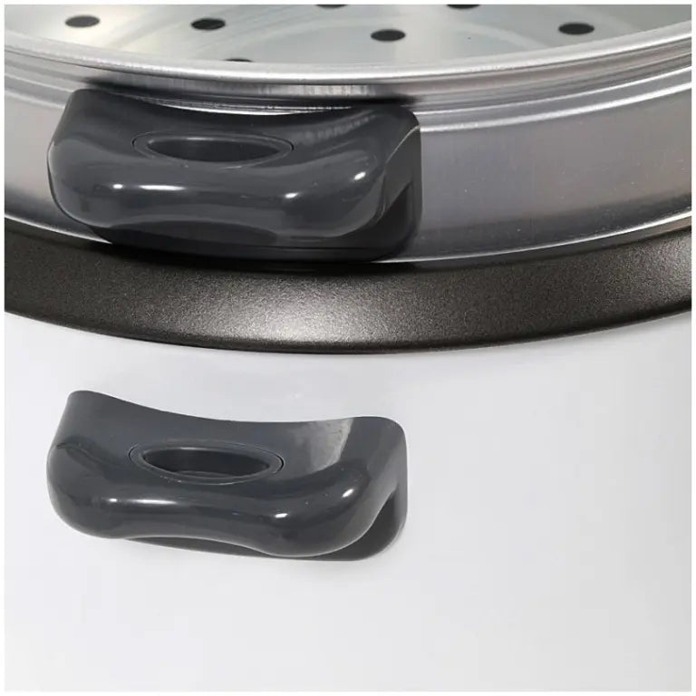 - Key Features: Removable non-stick bowl with aluminum steaming tray - Cook & Auto Warm function with indicator - Glass lid with cool touch handles - Easy to read water level indicator - One touch button for easy control - Includes measuring cup & spoon